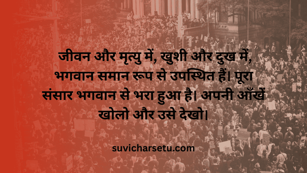 जीवन और मृत्यु में, खुशी और दुख में, भगवान समान रूप से उपस्थित हैं। पूरा संसार भगवान से भरा हुआ है। अपनी आँखें खोलो और उसे देखो।
